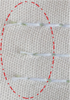 開啟密縫功能,使剪線前加一針密縫(或加多針密縫), 使切線后留在布上的線頭不散。