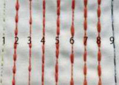 2、花樣縫:由步進電機控制,可自行設置產生1-9, 9種米粒狀不同線跡。
