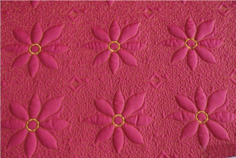 2、自動(dòng)隔頭繡功能,實(shí)現(xiàn)超大尺寸花樣絎縫。