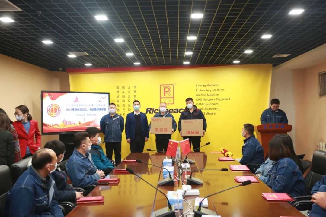 1月25日上午,上工富怡智能制造(天津)有限公司在公司黨員活動室召開了2021年度工作總結先進個人、先進集體表彰會。表彰會由公會組織委員白振鋼主持,總經理高接枝,總工程師李帥,副總經理王俊玲、周嬌、李霞、高雪源等出席表彰會,并為獲獎人員和集體頒獎。