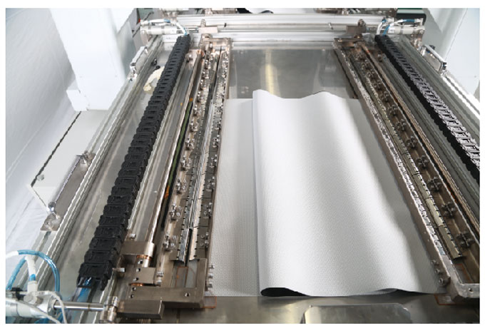 5、兩個縫紉工作區,A/B兩個作業臺面,交替運行。實現不停機、連續縫,機器滿負荷運行,生產效率提高一倍。