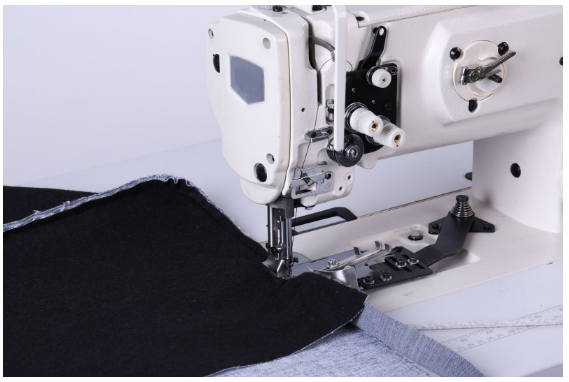 4.交替壓腳、機針和送布牙三部分同時送料,構(gòu)成穩(wěn)定高效的綜合送料系統(tǒng),確保在縫制 厚料或復(fù)雜結(jié)構(gòu)縫料時送料平順,上下層縫料不易產(chǎn)生移位。