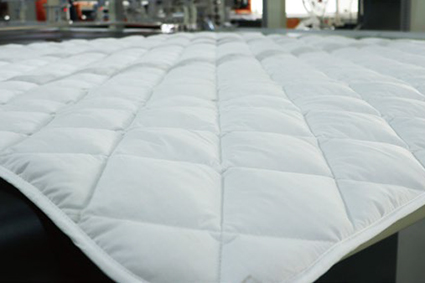 被芯,床笠,毯子等產(chǎn)品的自動(dòng)包邊及上商標(biāo)。可配合整體被芯生產(chǎn)線加工,實(shí)現(xiàn)自動(dòng)包邊作業(yè)。也可單獨(dú)應(yīng)用于絎縫后成品的全自動(dòng)包邊作業(yè)。