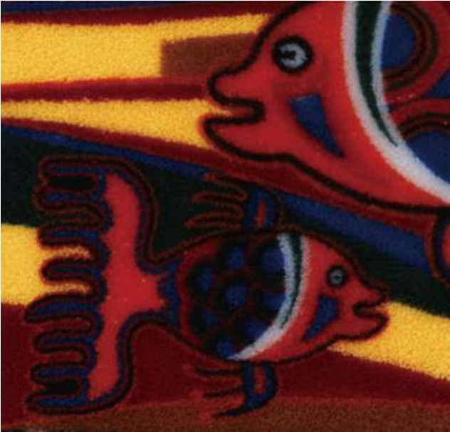 5、植絨成品線絨平滑、均勻。繡線穿透織物緊勾固定,經過背膠處理 后牢固可靠。